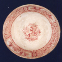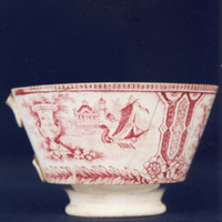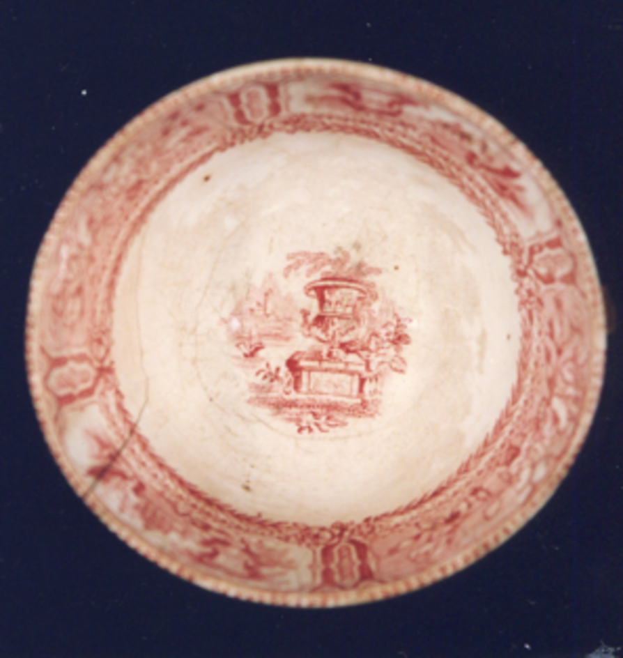 Todo o corpo da cunca está decorado con estampados en rosa: sucesión de viñetas con paisaxe "Góndola". Na parte interna, viñetas co mesmo paisaxe alternando con rosas.