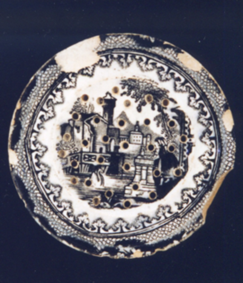 Salvadeira de forma cilíndrica con molduras e orificios na parte superior para a saída das areas secantes.