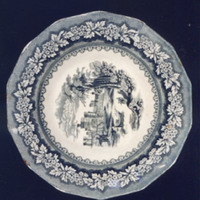 Prato sopeiro con bordo poligonal e estampaxes en negro.