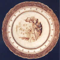 O tema central é unha gran viñeta con paisaxe real, na que aparece unha longa pasarela sobre a que circulan personaxes. Debaixo hai unha inscrición: "CAMINO DEL HIERRO EN LA AGUADA DEL CURA".