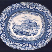 Fonte chaira de forma ovalada con bordo de ondas e estampacións en azul. O tema principal, no centro, é unha gran viñeta con paisaxe real e debaixo epígrafe "Aduana de la Habana". O tema está sacado dun gravado da época.