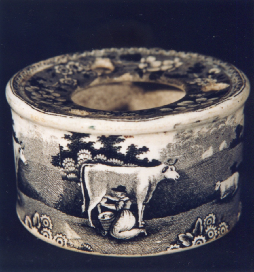 Tinteiro de forma cilíndrica. Fáltalle a tapadeira.