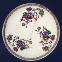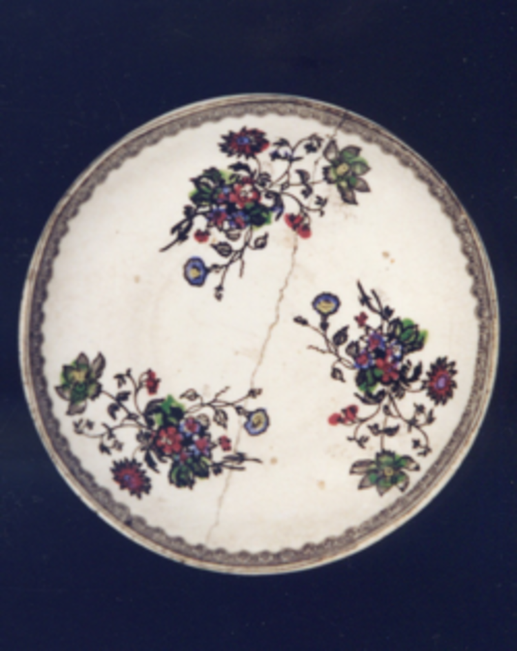 O motivo decorativo é un ramiño de flores que se repite tres veces na superficie do prato: son flores da paixón, pintadas en verde e amarelo; campanillas, en azul, e outras flores en vermello (pouca destreza no iluminado).