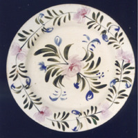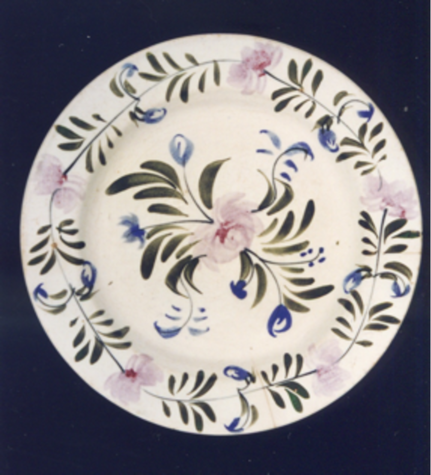 Prato chairo de bordo liso e decoración realizada a man con pincel.