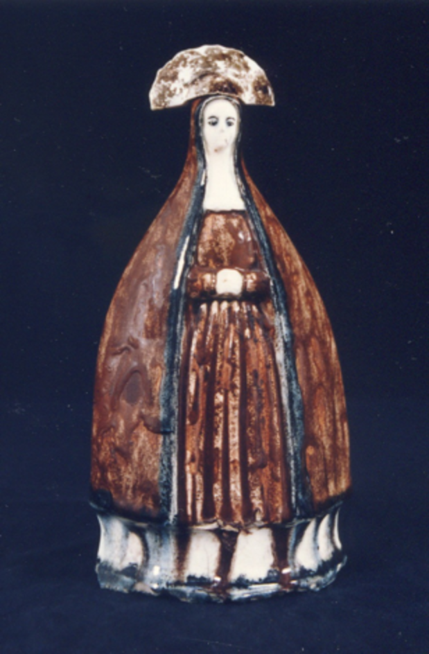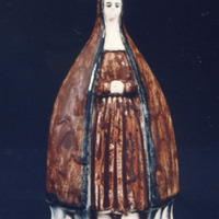 - Botella para auga bendita en forma de Virxe das Angustias: a Virxe posúe un gran manto que a cobre de cabeza aos pés, en cor marrón co bordo negro, túnica marrón longa. Mans xuntas sobre a cintura, ollos e cellas negras. Tanto a pintura do manto como da túnica está dada en exceso polo que cae formando grandes chorretones que discorre ata a peaña. A tapadeira constitúea a coroa da cabeza e na parte traseira ten asa para suxeitala.
