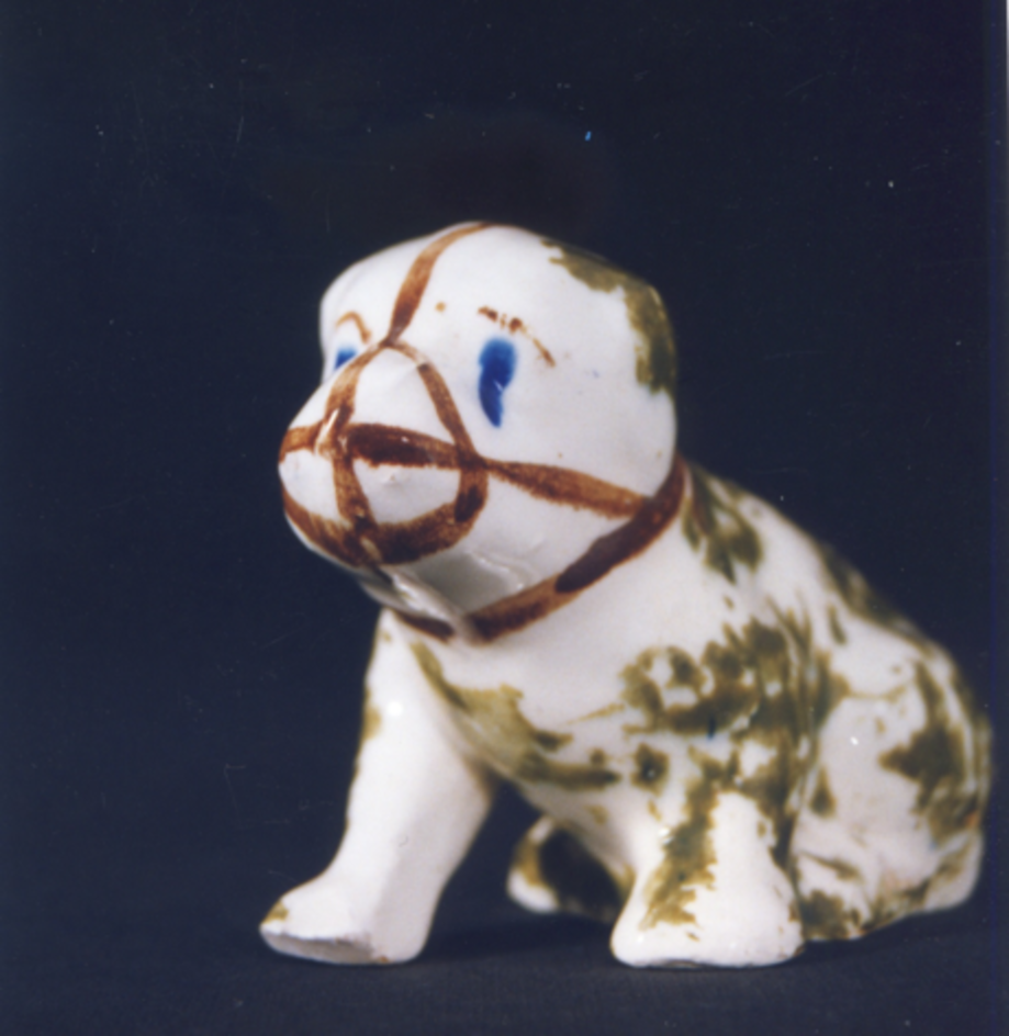 Palilleiro en forma de can dogo tombado: posúe os orificios para os escarvadentes no lombo do animal.