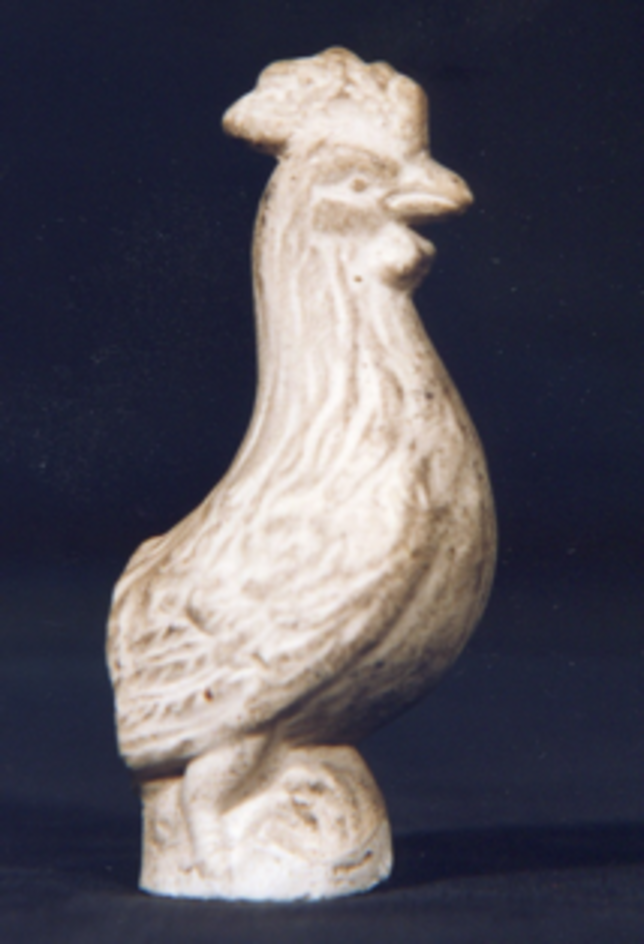 - Galo en biscoito, sen vidriado. Fáltalle a cola. Podería ser un palillero.
