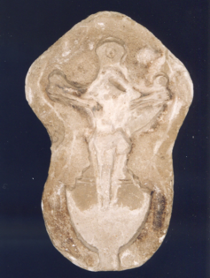 - Molde para a realización dunha pila de auga bendita: é unha das partes na que se ve en relevo afundido Xesucristo crucificado e a forma da pileta. Outro molde formaría con este a matriz.