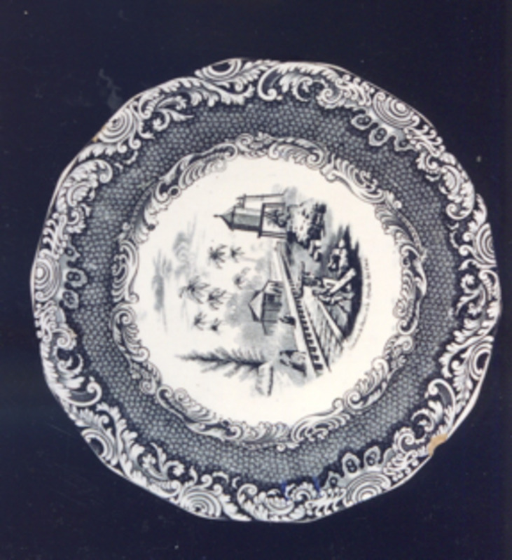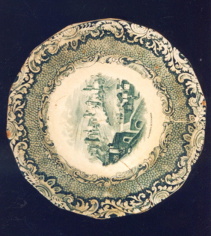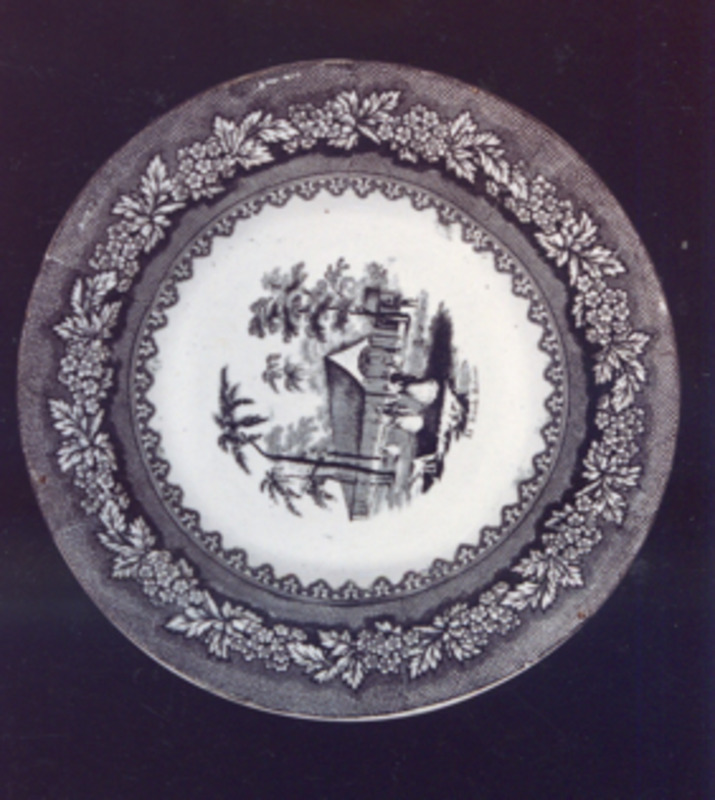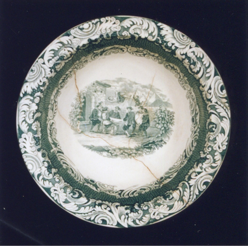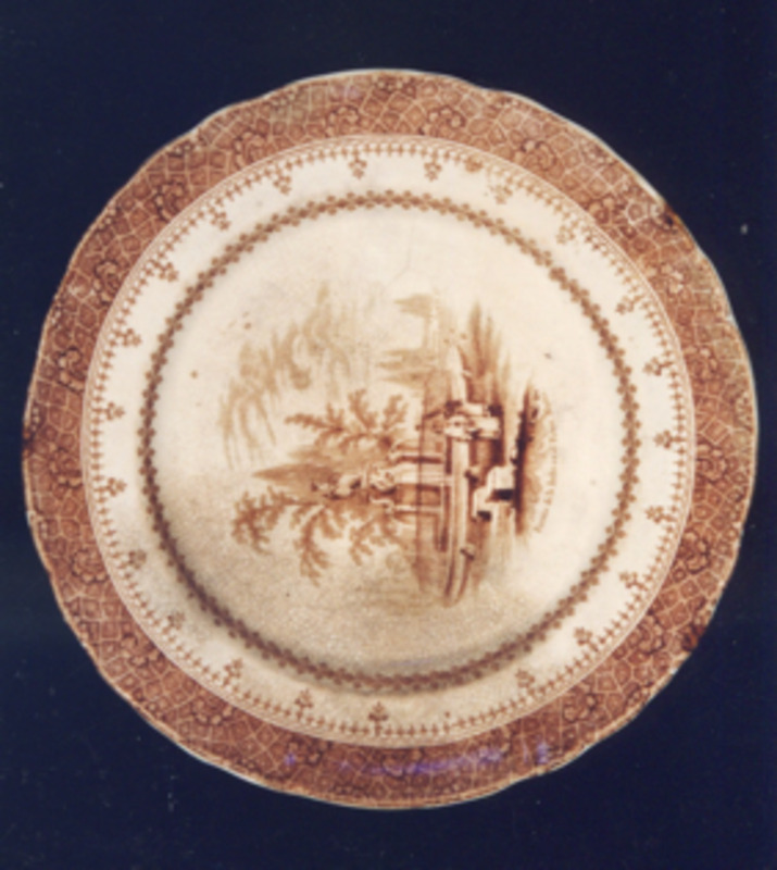 Completa a decoración a orla "tipo isabelino" da á do prato, con roleos, que é unha copia da orla empregada pola fábrica fundada por Sporcle en Staffordshire e que en 1833 se chamou "Copeland & Garret " (1833-1847)
