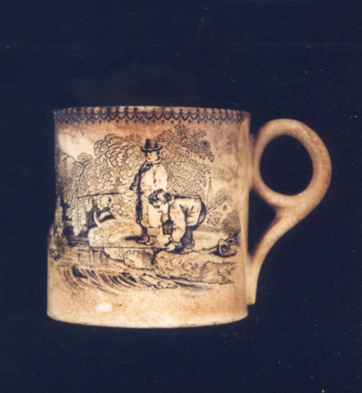 Os temas principais son 2 viñetas que ocupan toda a superficie da cunca: un é o tema con viñeta de nenos pescando, a escena verifícase ao aire libre, dous nenos, un de pé e outro agachado pescando. A escena organízase nun espazo imaxinario, con masa de árbores e ao fondo, granxa con muíño de auga.