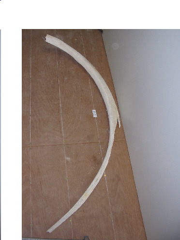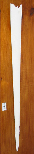 Peza alongada de óso que se estreita progresivamente ata acabar en punta moi afiada. Cor marrón clara. Pertencente a un peixe espada ("Xiphias gladius").