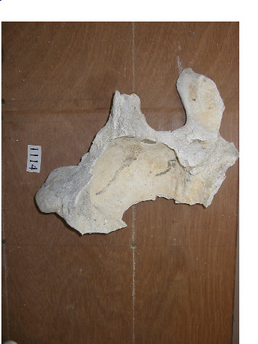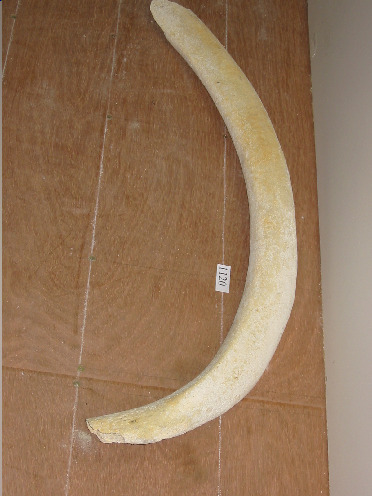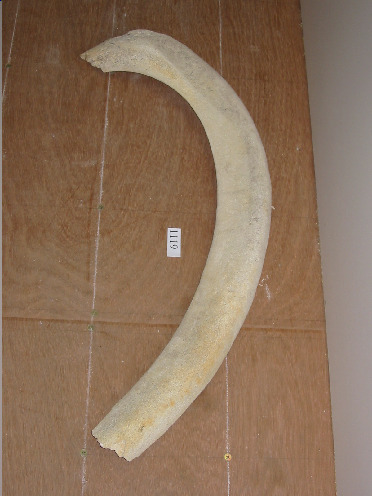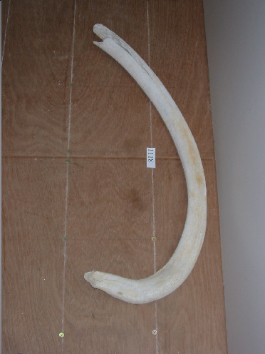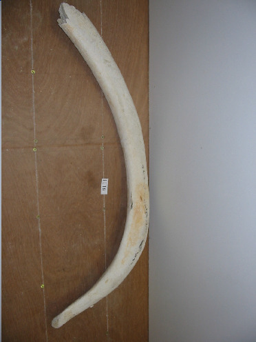 Parte superior da boca do peixe espada, "Xiphias gladius", de forma alargada e rematada en punta (espada). Cor branca xa que perdeu a cuberta orgánica que a protexía e lle daba unha cor grisácea.