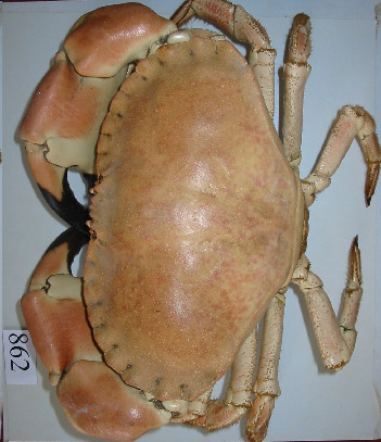 Cangrexo ermitaño dentro da cuncha dun gasterópodo que lle sirve como refuxio. A cuncha ten entre 11 prolongacións a xeito de dedos na base, son de forma aplanada e cor marrón oscuro. O ermitaño ten unha pinza peluda. A pinza dereita é maior.