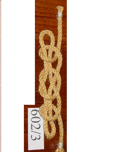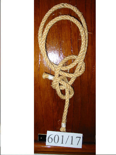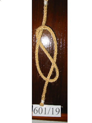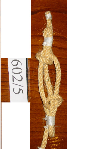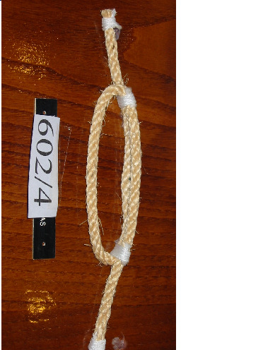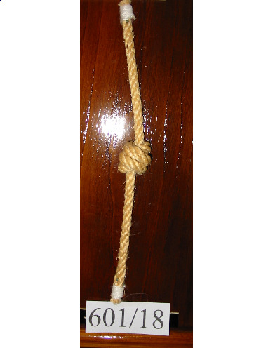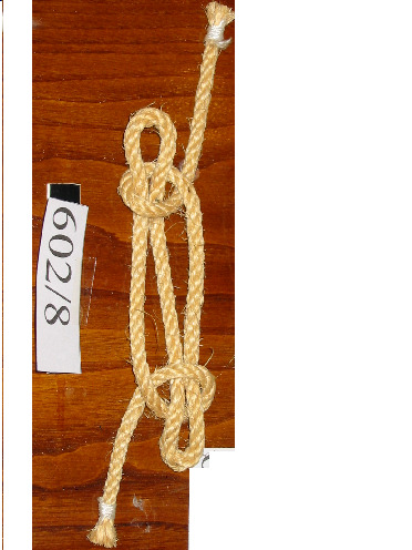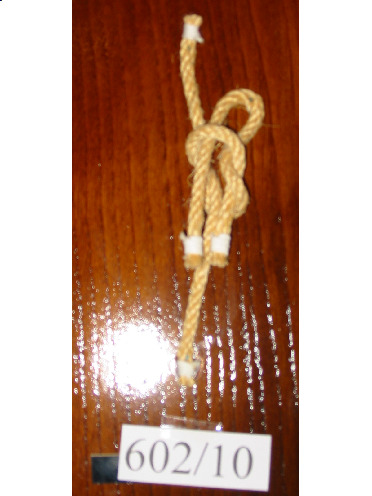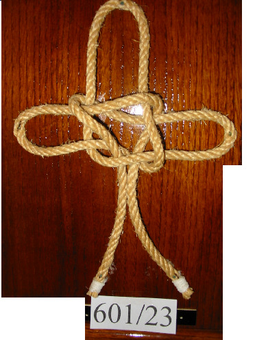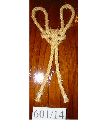 Nó margarita feito cunha soa corda de dous cabos, non empata unha corda con outra. Ten un pedaciño de pau en cada oco dos extremos para facer o nó máis seguro.