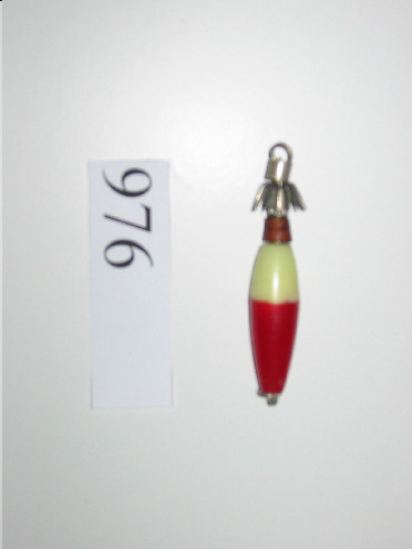 Rama torcida e pulida en forma de punta de flecha á que vai atada unha pedra. A pera, por arriba, tamén está suxeita por dúas ramas xuntadas en forma de V. Ten unha trampilla e un cabo.
