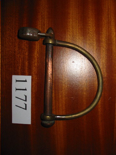 Peza semicircular, en ambos extremos ten dúas arandelas para seren atravesadas por un clavo. O extremo do clavo ten un candado para evitar que se abra.