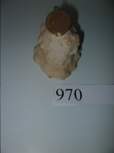 Medalla de bronce pegada a unha peza de coral de cor branca lixeiramente marelenta e porosa. A medalla ten o relieve do Acorazado "España" por unha cara e o texto "Botado al agua en Ferrol 5 Febrero" pola outra, na que aparece un ramiño de laurel.