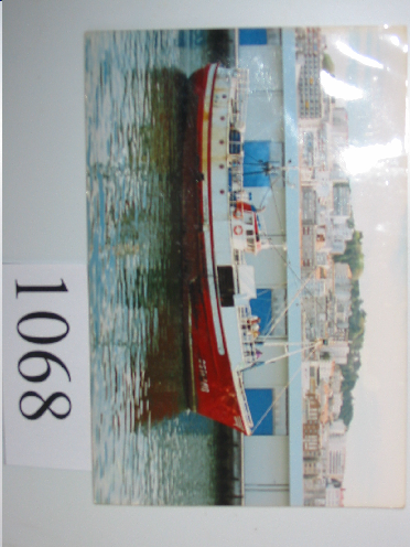 - Buque navegando. Pesqueiro. O casco é de cor vermello.