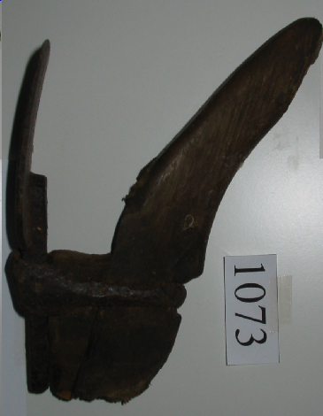 - coitela recta unida a un mango en diagonal, o mango está suxeito por unha argola alongada que sae da coitela.