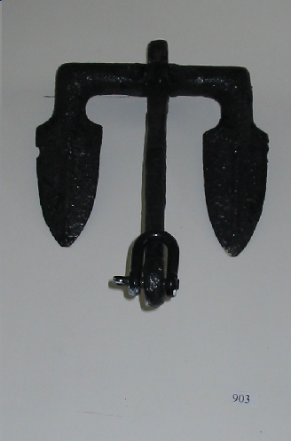 - Áncora tipo Hall, sen cepo, con dúas grandes uñas, no final da caña ten un arganeo.