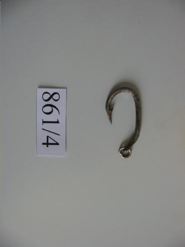 - Patilla curvada con argola. Cana recta. Curva normal. Pico torcido lixeiramente. Prateado.