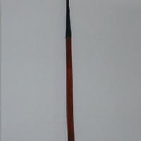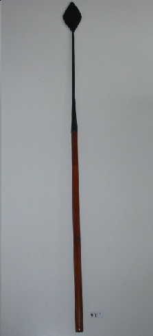 - Arpón de man para a caza de cetáceos. Ten o mango de madeira e a punta de ferro, é de dobre filo, con forma romboide