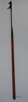 - Arpón de man con mango de madeira e punta de ferro. A punta ten dous filos, un é liso e o outro ten dous picos.