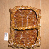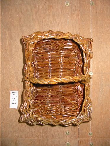 - Cesto e bimbio, cerrado parcialmente na boca, ten un asa en forma de aro.