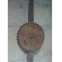 - Roda maciza dentada cunha máis pequena estrelada que xiran ó mesmo tempo y en sentidos opostos. O conxunto está suxeito a unha tira de madeira alongada e que sobresae a ambos lados das rodas.
