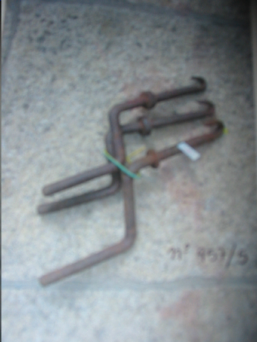 - Tres pezas similares de ferro, alongadas y en forma de dobre "ele" rematadas cunha forma de gancho nun dos extremos.