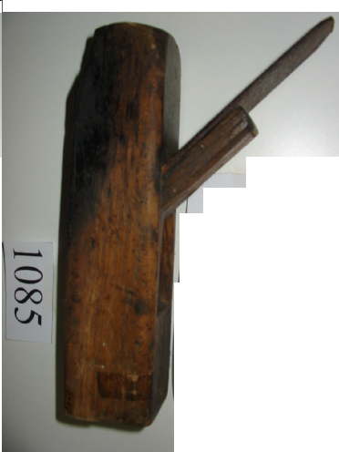 - Ferramenta de madeira de forma alongada cunha abertura transversal máis ou menos inclinada, onde hai unha coitela suxeita por unha cuña.