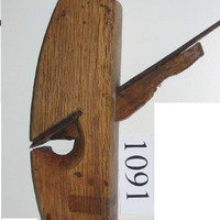 - Utensilio de madeira de forma alongada que leva incrustada, atravesándoo, unha coitela. A base é curva.
