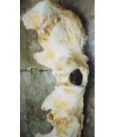 - Parte dos ósos da cabeza dun cetáceo, apréciase que pode ser parte das aletas dunha balea.
