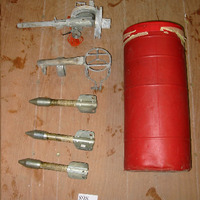 - Base circular con vástago vertical cunha inclinación regulable a traveso dunha guía xiratoria. Ten un cabo unido a un arnés.