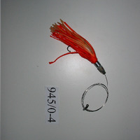 - Liña composta de cebo artificial con forma de cefalópodo, de cor laranxa, con moitos flecos que esconden o anzol. Da cabeza do cefalópodo sae un fio de aramio que ten no outro extremo un xiratorio. Os ollos do cefalópodo teñen unha tonalidade vermella.