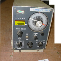 - Caixa de metal gris con catro pechaduras. Na cara frontal ten os mandos de radio. Modelo CRAME-27 RD-1. Ten escrito: Receptor direccional.