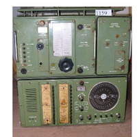 - É un aparato de radio de cor verde, con auricular para teléfono. É bastante grande e con moitos mandos. Os mandos son de cor negro e prateado. Nun lateral ten unha tarxeta que é o certificado de validez.