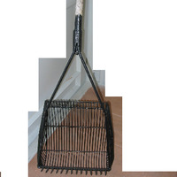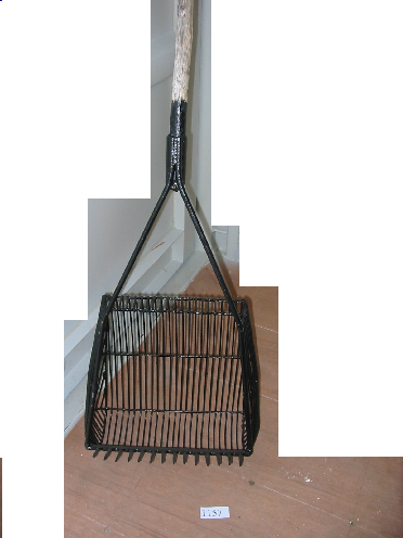 - Consta dunha armadura de ferro de forma rectangular, que ten uns dentes e está aberta por unha cara. No outro extremo ten un mango de madeira bastante longo.