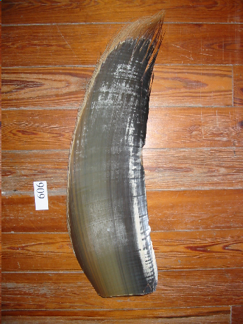 - Balaenoptera musculus (Rorcual azul). Barba negra, longa e forte. Con estriacións perpendiculares á liña de fleques.