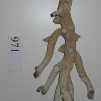 - Semella unha ponla dunha árbore con varias ramificacións cortas. Cor branca misturada con tonos grises e marelos cerca do pé. Ten aspecto duro ainda que fráxil e quebradizo.