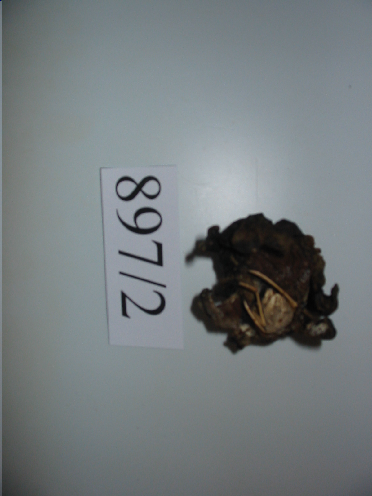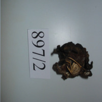 - Cangrexo ermitaño dentro da cuncha dun gasterópodo que lle sirve como refuxio. A cuncha ten entre 11 prolongacións a xeito de dedos na base, son de forma aplanada e cor marrón oscuro. O ermitaño ten unha pinza peluda. A pinza dereita é maior.