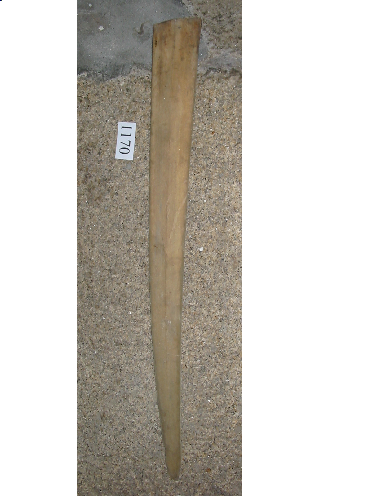 - Peza de óso alongada que se vai estreitando progresivamente. Por unha cara é de cor marrón escuro e pola outra é de cor crema.