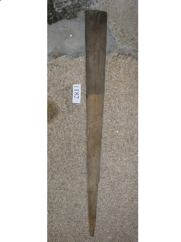 - Peza de óso que se estreita progresivamente . É do cor marrón escuro, ten manchas de pintura de cor verde e branco.