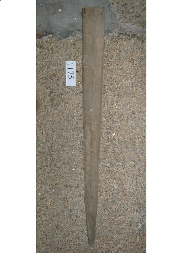 - Peza de óso alongada que se vai estreitando e acaba en punta. É de cor marrón-grisáceo, máis claro por unha cara que pola outra.