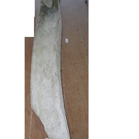 - Mandíbula de balea. Está baleira polo medio, é moi porosa, de cor grisáceo. Ten musgo pegado. Nun extremo está fragmentado.