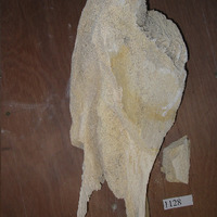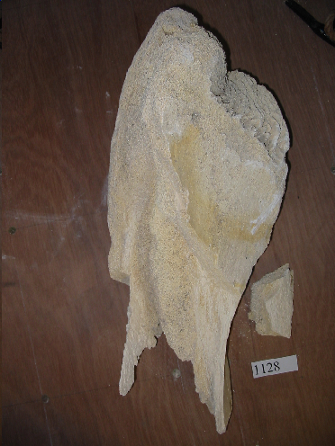 - Óso de cetáceo de cor branco, algo oscurecido e con manchas amarelas. Nalgunhas zonas é moi poroso.