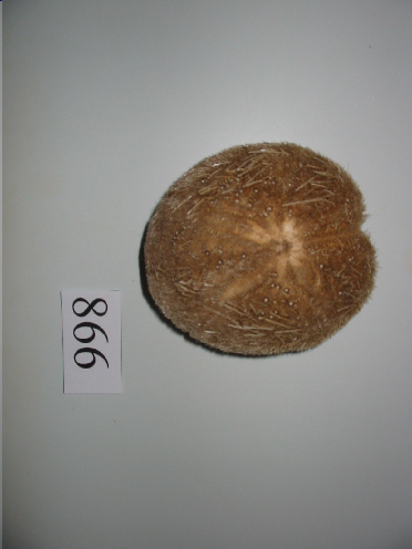 - 5 filas de pedicelos das que a anterior é a máis longa e está nunha canle pronunciada pero relativamente somera que conduce á boca. Púas:na súa maioría curtas, pero algunhas da cara superior son máis longas. Cor: parda.