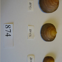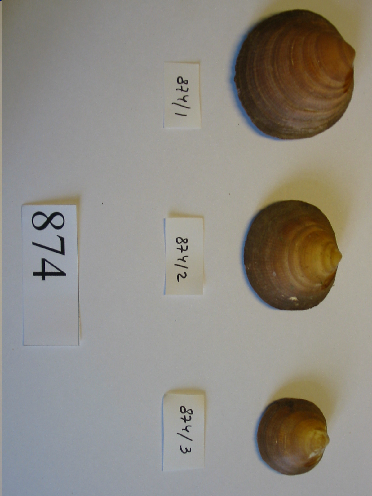 - 3 cuncha cáseque circulares. Valvas similares. Borde crenulado. Ligamento externo. Liñas de crecemento concéntricas e radiais. Cor: marrón escuro a tonos máis pardos cerca do umbo.