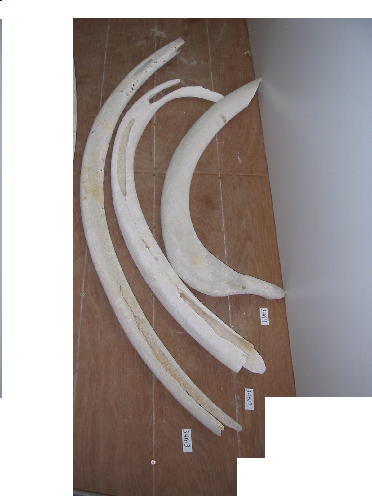 - 3 ósos moi curvados e finos. Na base teñen un estreitamento que semella unha foz con costelas.