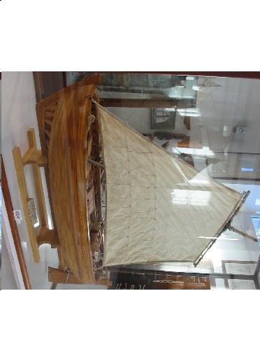 Decorativo. A maqueta imita un trincado, embarcación menor de cabotaxe